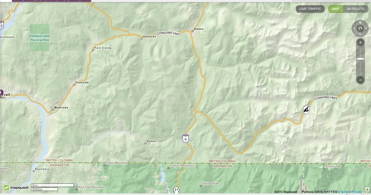 The valley of Sheep Creek marks the northern boundary of the Jersey Emerald mine property. The valley of Lost Creek marks the southern boundary of the Jersey Emerald mine property. The position of the Nevada Mountain peak about 10 km east of the Crows Nest highway marks the eastern limit of the Jersey Emerald mine property. The valley of the Salmo River marks the western boundary of the Jersey Emerald mine property.