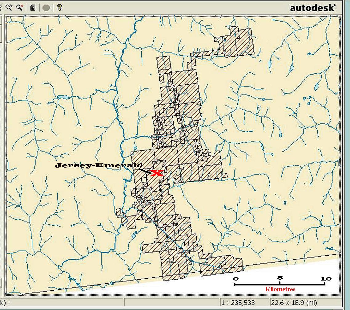 Jersey Emerald is the same site that Placer Dome's (formerly Placer Development) subsidiary Canadian Exploration Ltd. (locally known as Canex) operated from 1947 to 1974.