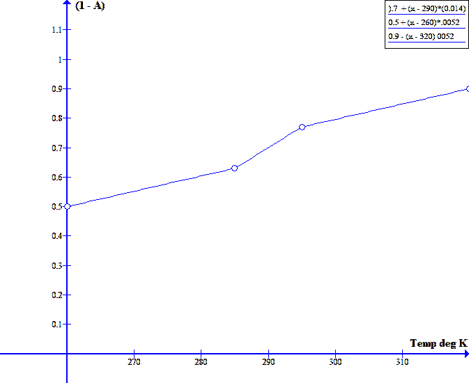 i) Today the measured value of A is: A ~ 0.30 and the average temperature is about 290 deg K