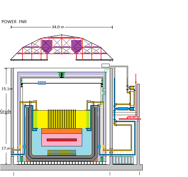 Most of the power FNR design concepts have been extensively tested in small research reactors such as the EBR-2. However, the EBR-2 had barely 6% of the THERMAL power rating of the FNR contemplated herein. Some important FNR design concepts are reviewed below: