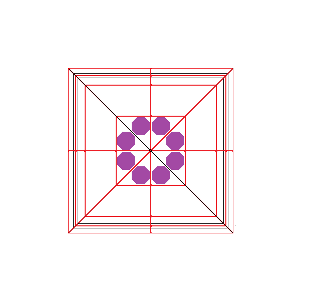 dome. The structural steel frame members are shown in red. The NaCl reservoirs are shown in purple. The top of the supporting concrete side wall is shown in black.