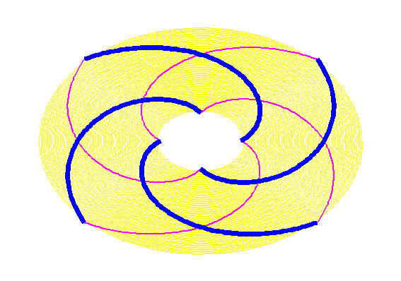 This elementary spheromak winding pattern was generated using a polar graph and formulae of the form: